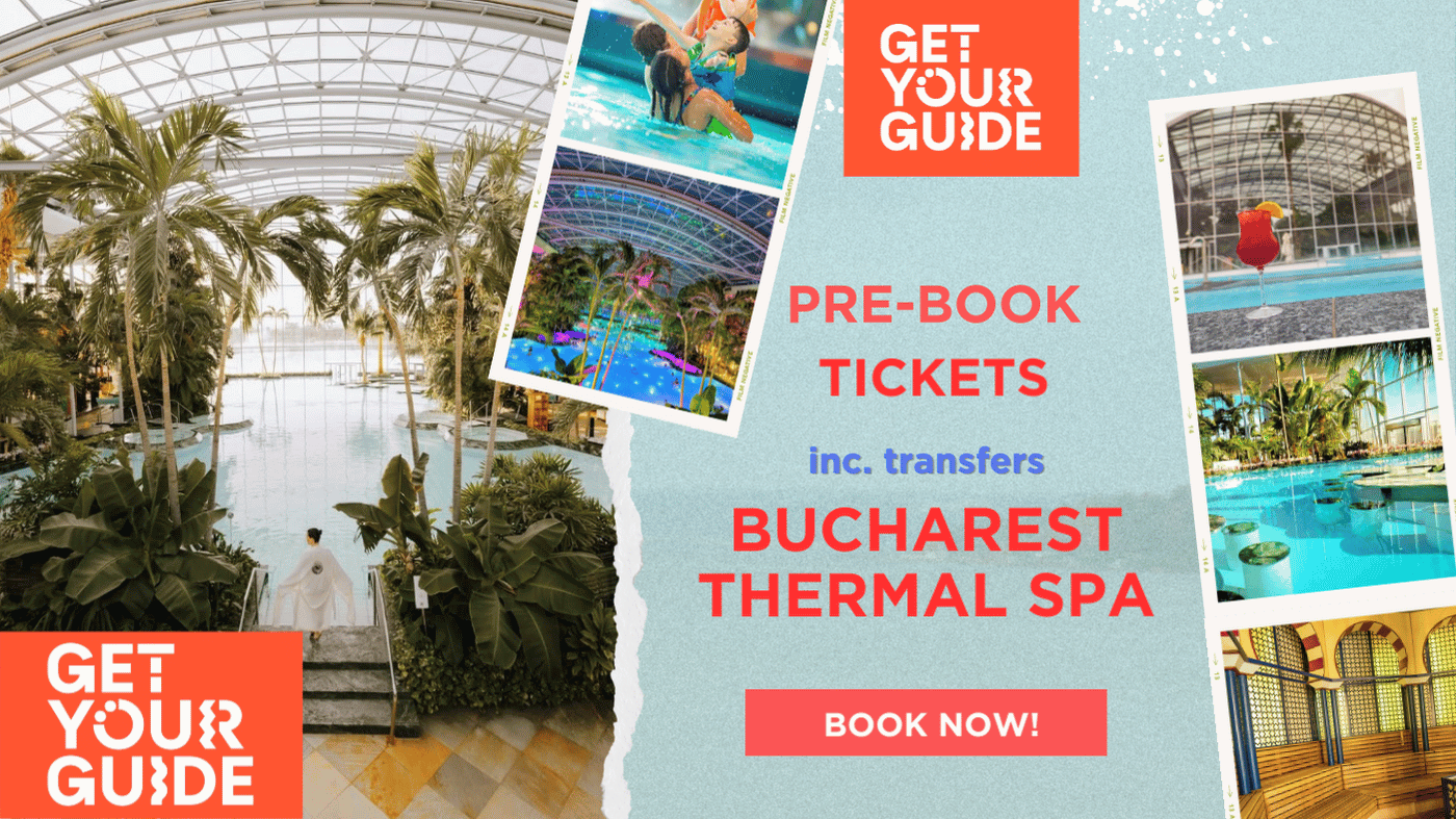 If you’re in Bucharest for a city break then the chances are your hotel will be some way away from the thermal baths. Get Your Guide provide a choice of different booking options including pickup from the city centre to the Thermal Spa and then return journey back to the city. This saves you a lof of hassle trying to navigate your way through a foreign public transport system.